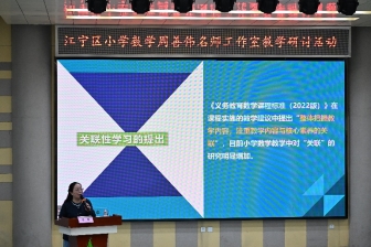 课例展示后,鼓楼区教师发展中心陈馨老师开展题为《小学数学跨学科主题学习的融合与实践》的专题讲座。陈老师从学科内关联、跨学科融合、项目化学习等维度展开,结合具体教学案例,系统阐述如何打破学科壁垒、设计具有实践性与综合性的学习任务,为参训教师提供了可借鉴的教学思路与实施策略。